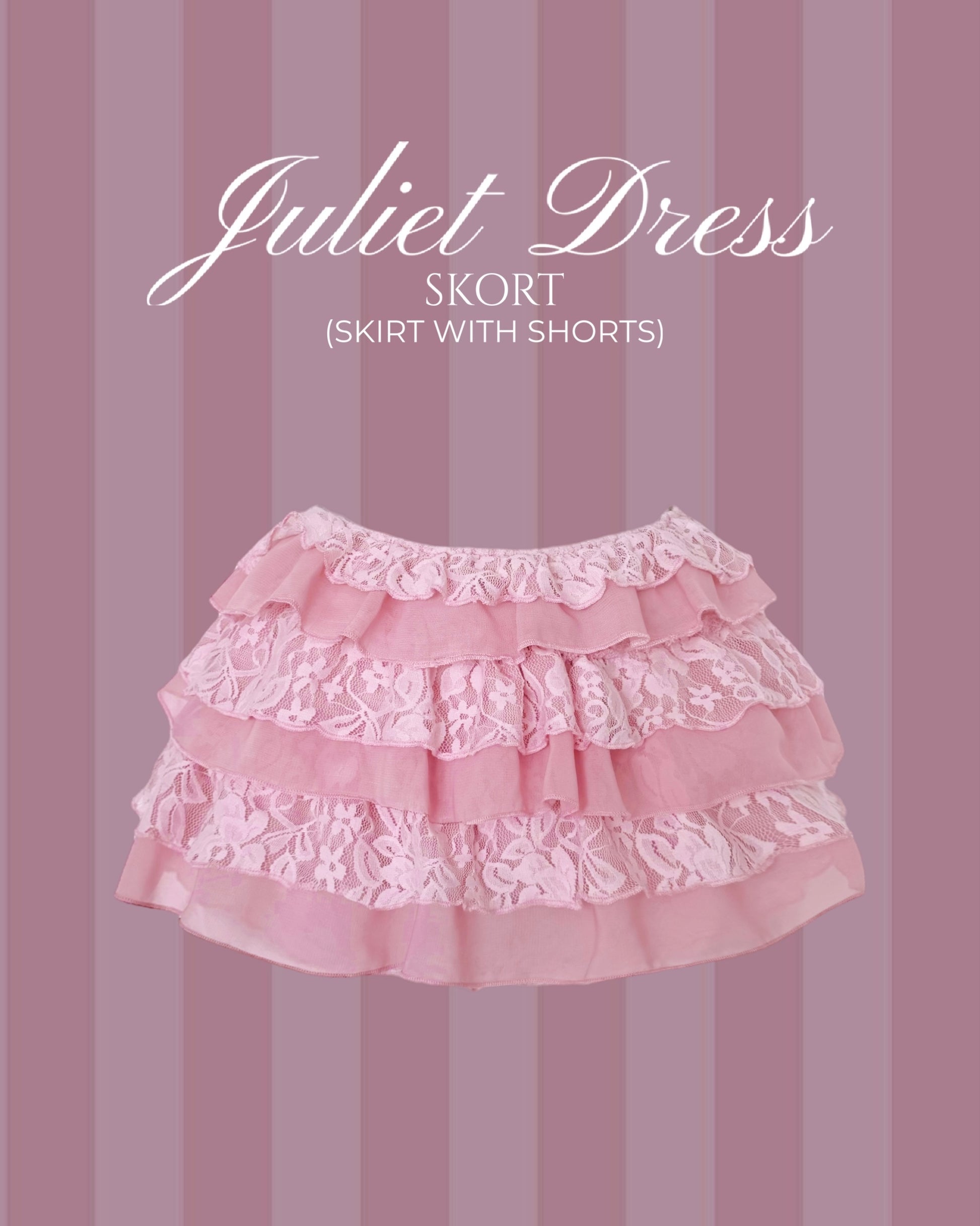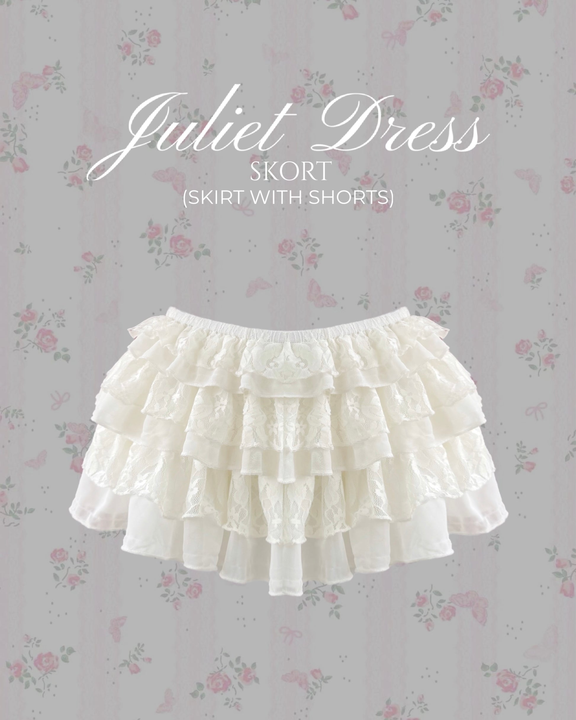 Una falda con shorts, unos detalles fruncidos, volantes de encaje que dan comodidad y volumen.