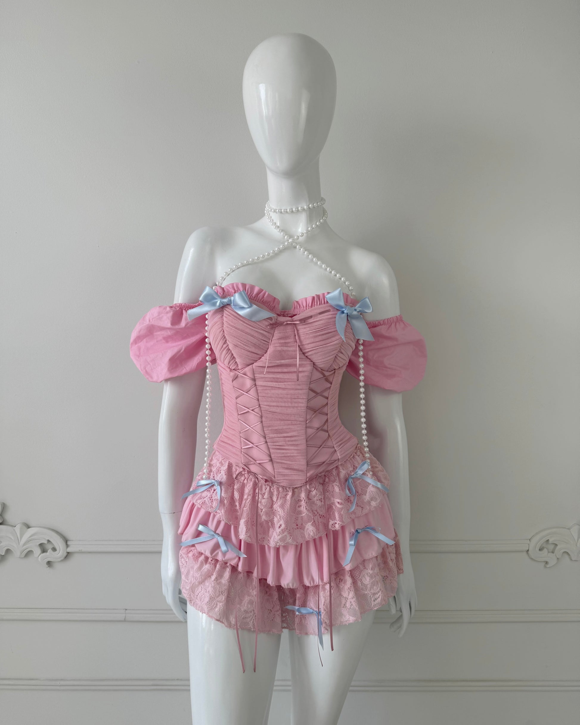 - Melanie Martinez: Corset Lucy Rosado + Falda Kristy corta Rosada + Top Giselle Rosado