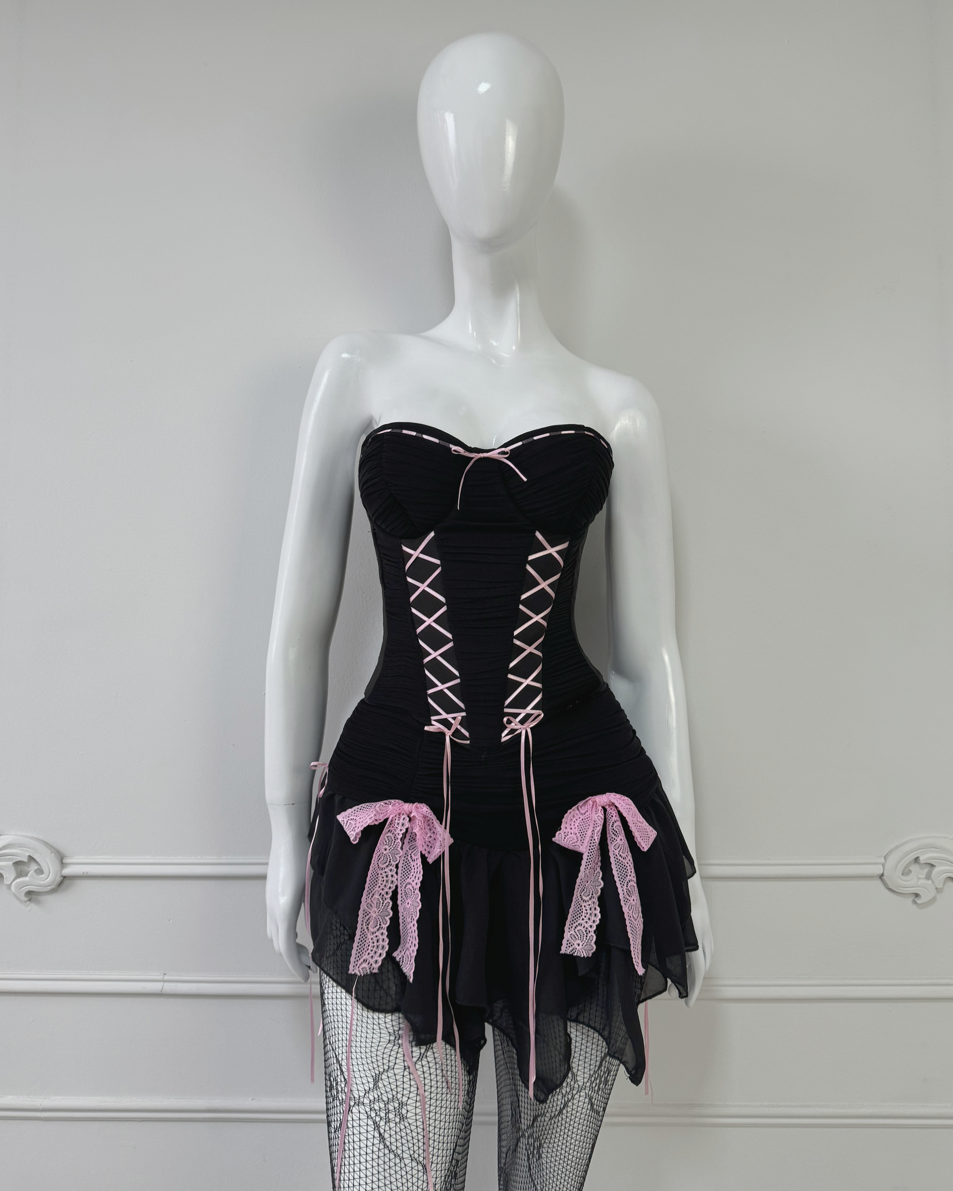 - Dark Coquette: Corset Lucy Negro + Falda Lucy corta Negra